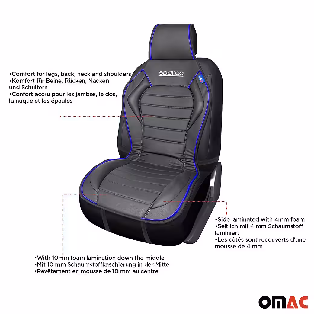 SPARCO Car Seat Cover, Seat Cushion, Seat Pad, Universal, Black/Blue, Car Seat Protector
