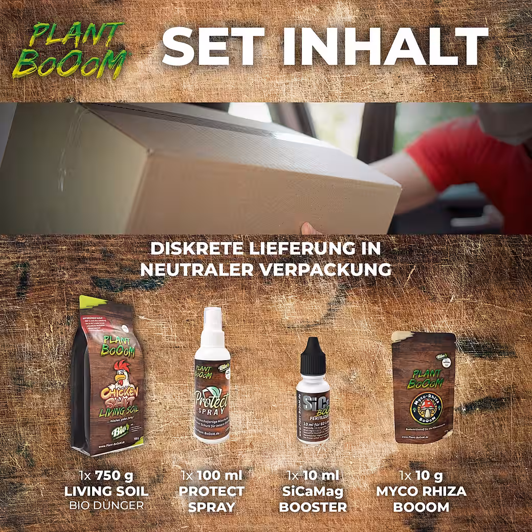 - COMPREHENSIVE SET – Contains everything you need for successful cannabis cultivation: 750g Livingsoil, 10ml SiCaMag BoOoM, 10g Myco-Riza and 100ml Protect Spray.