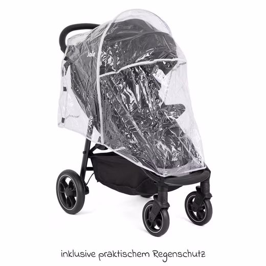 The Joie Litetrax is a comfortable buggy and stroller with a well-thought-out design. It features a large, water-repellent canopy with UPF 50+ sun protection , a backrest that reclines to a lie-flat position, and fully sprung, puncture-proof wheels. The set also includes a rain cover and a warm thermal footmuff .