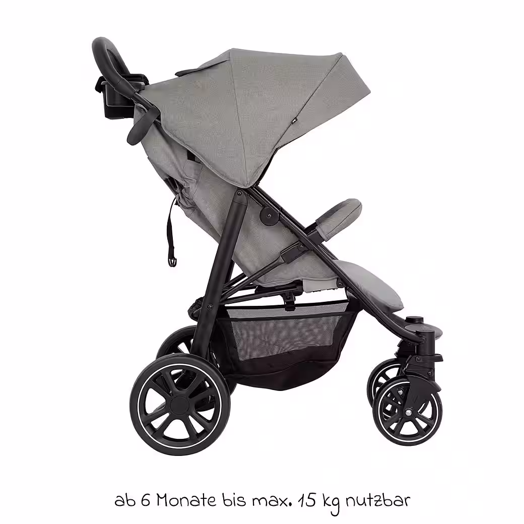 - Lightweight and practical: approx. 9.5 kg frame with a large storage basket for shopping or a diaper bag. Ideal as a compact buggy for travel, city use, and everyday life.