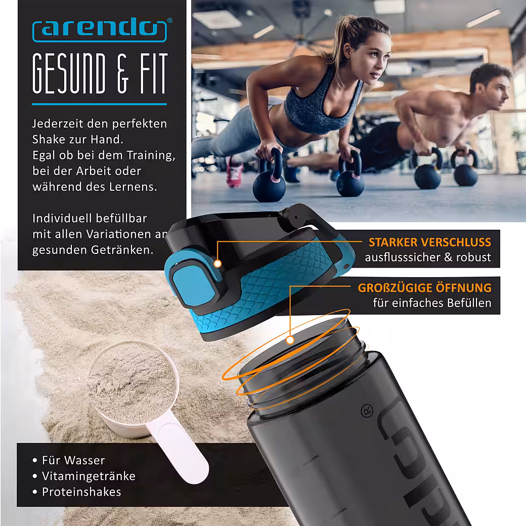 - Drinking bottle with measuring scale (Art. 307165/187): Control your fluid intake and boost your well-being. Perfect for fitness, diet, and health.