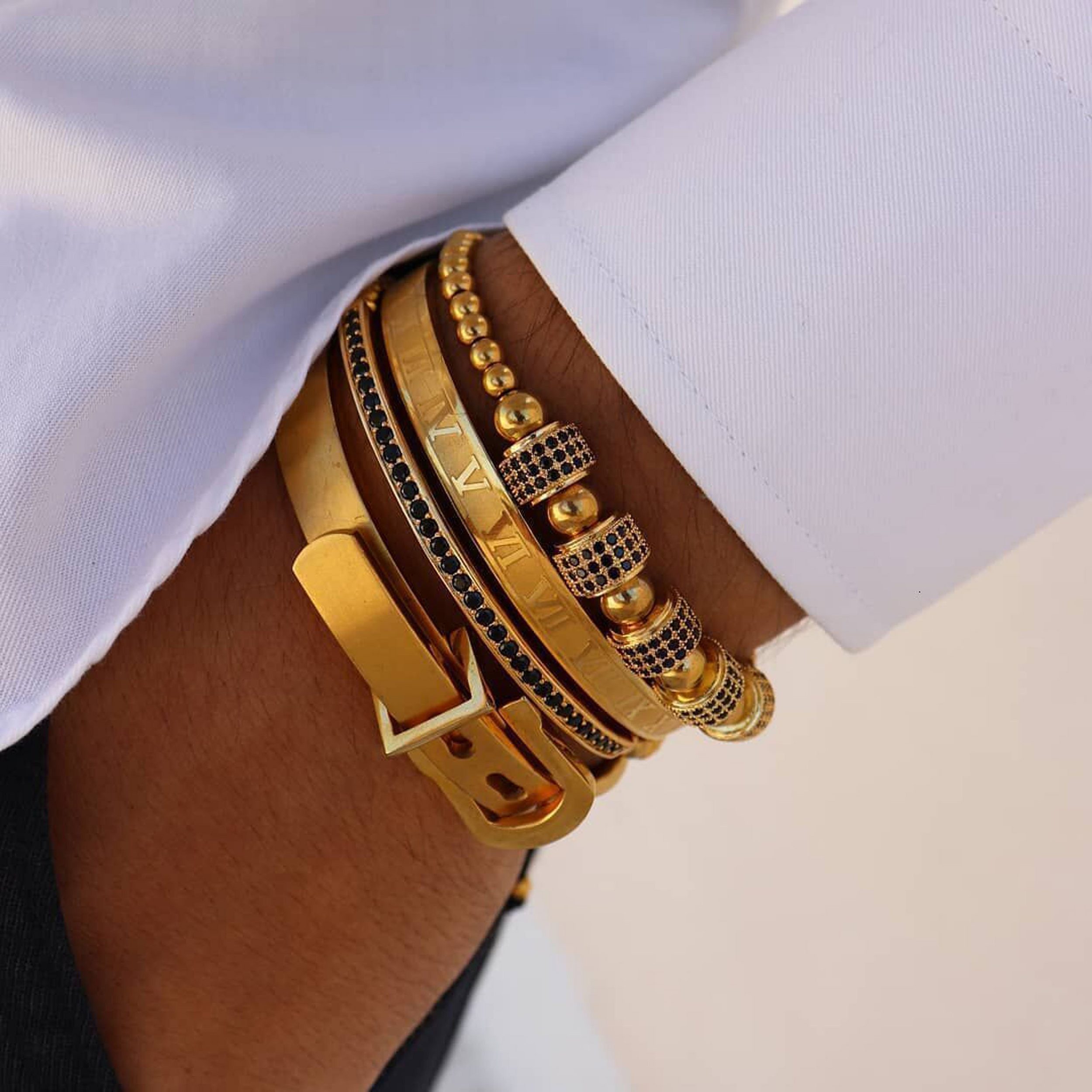 Stainless steel bracelet set Stainless steel bracelet SET men “ROYAL IMPERIAL” gold-plated – 4 bracelets