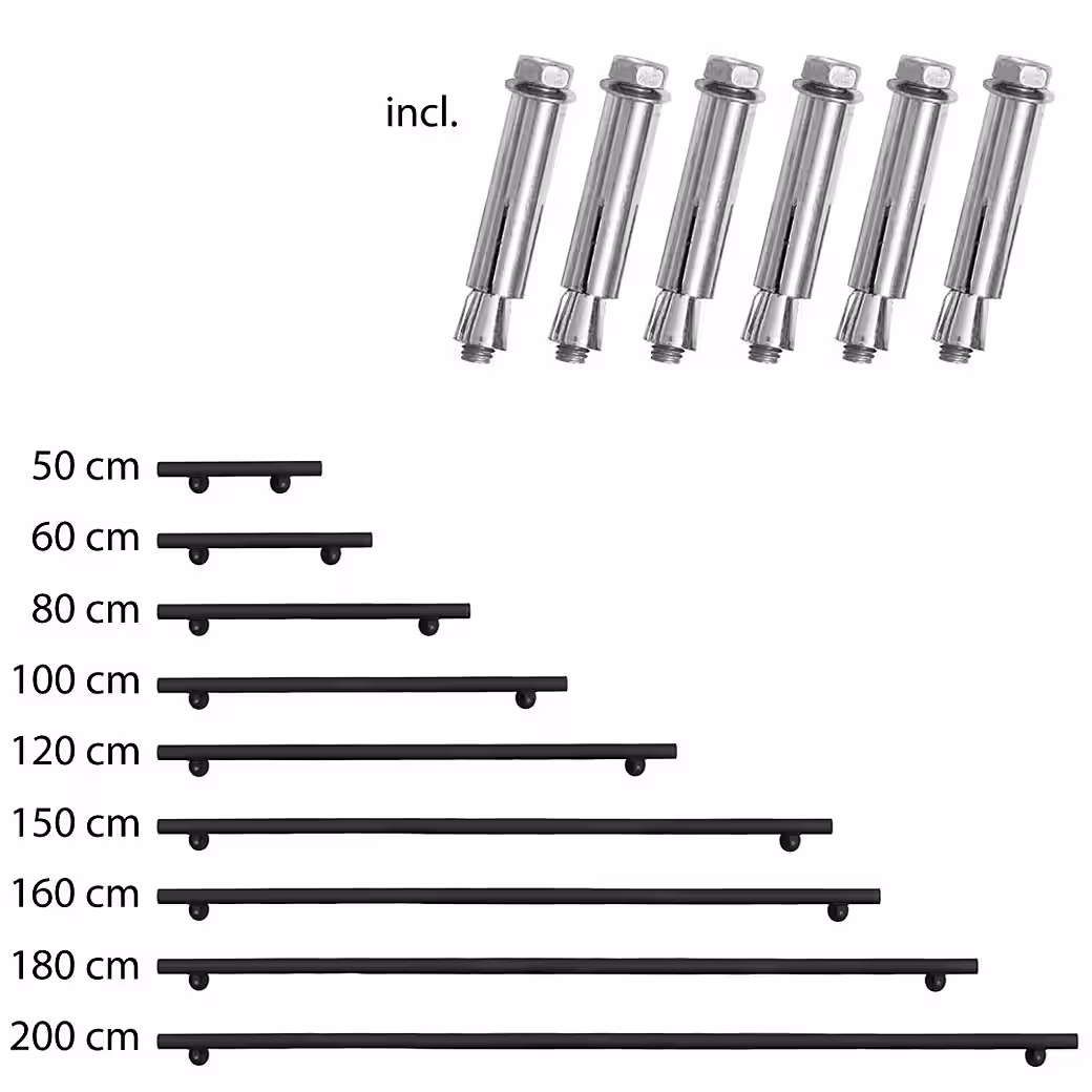 Choose the right length for your project: The handrail is available in lengths of 50, 60, 80, 100, 120, 150, 160, 180 and 200 cm. This makes it suitable for both short stair sections and longer walkways.
