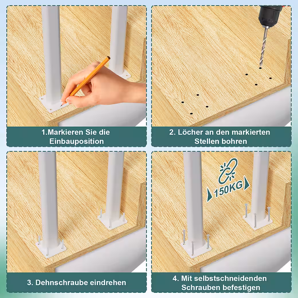 Easier installation: 4 screw holes on each base, safer and more stable. Includes the necessary installation accessories; can be quickly installed in 10 minutes on any material such as concrete, marble, and is easy to use.