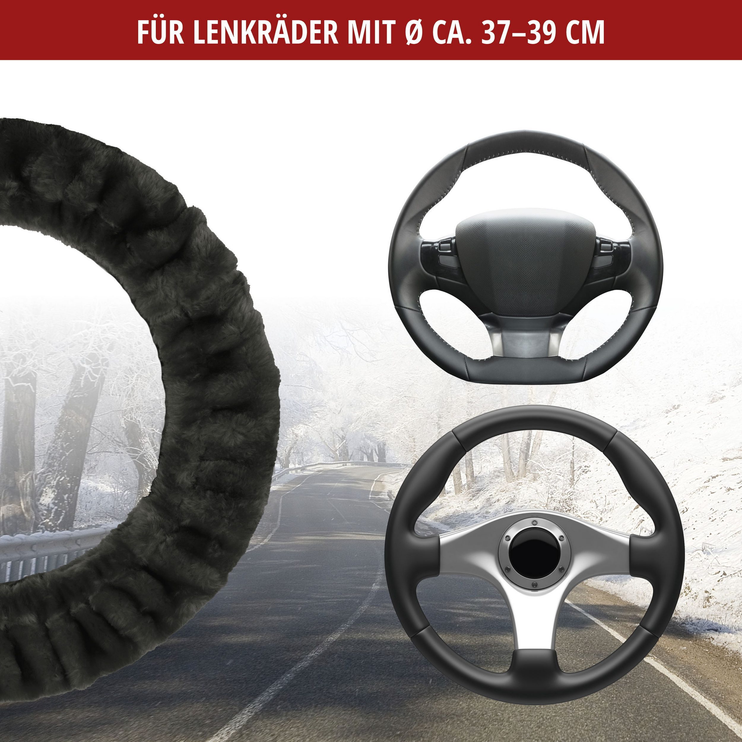 The plush Teddy steering wheel cover in anthracite offers exceptional comfort and is distinguished by its wonderfully cuddly feel. Elasticated binding allows the cover to fit most steering wheels approximately 37-39 cm in diameter, making it suitable for most cars.