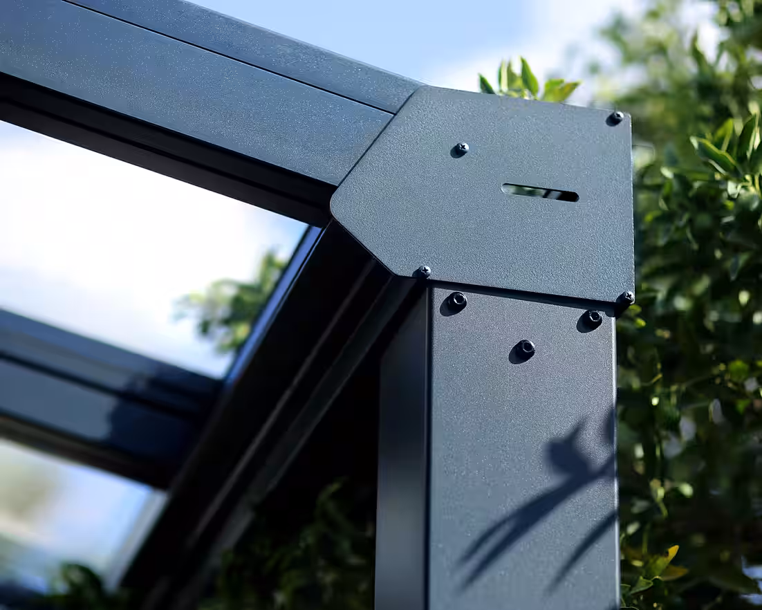 Canopia Stockholm Premium Aluminum Patio Cover with Polycarbonate Panels, 3.4 x 6.6 m. Make a clear statement with the solid and elegant Stockholm patio cover from Palram – Canopia. The Stockholm patio awning has a clean design that provides you with an elegant living space where you can enjoy nature while being protected from the elements. The transparent panels are made of polycarbonate, a luxurious, virtually unbreakable polymer that offers 100% light transmission and all the advantages of glass without the associated drawbacks, making it extremely safe. It is highly durable, weather-resistant, and UV-resistant, guaranteeing years of strength and quality. This modern awning is designed for year-round use, allowing you to spend more time relaxing, dining al fresco, hosting parties and events, or simply enjoying the view of your garden. Enhance your home and garden in a weekend and enjoy the view for years to come. Robust and solid construction – highly durable and rust-resistant anthracite powder-coated aluminum profiles and galvanized steel connectors. Unique screwless patio roof system offers a rust-free hardtop, leak-free glazing, and a clean design. Virtually unbreakable, 100% UV-protected, crystal-clear 4 mm thick polycarbonate roof system – protects against harmful UV rays, hail, and snow. Unique panel installation and locking system. The panels retain their integrity and offer complete UV protection. They do not discolor, break, or become brittle over time. Integrated, internal, concealed gutter. Easy 2-person DIY assembly – sliding panel mounting system, ready-to-install pre-drilled profiles, pre-cut panels. Wall mounting at a minimum height of 230 cm / 7’7″. Aluminum patio cover – maintenance-free. Requires a solid, level surface and a sturdy wall support. Compatible roof louvers are available. Patio covers are available in various sizes and colors. Click here to find more patio cover kits. Size: 3.4 x 6.6 m. Frame Material: Aluminum. Frame Color: Gray. Panel Material: Polycarbonate. Panel Color: Clear. Roof Thickness: 4.0