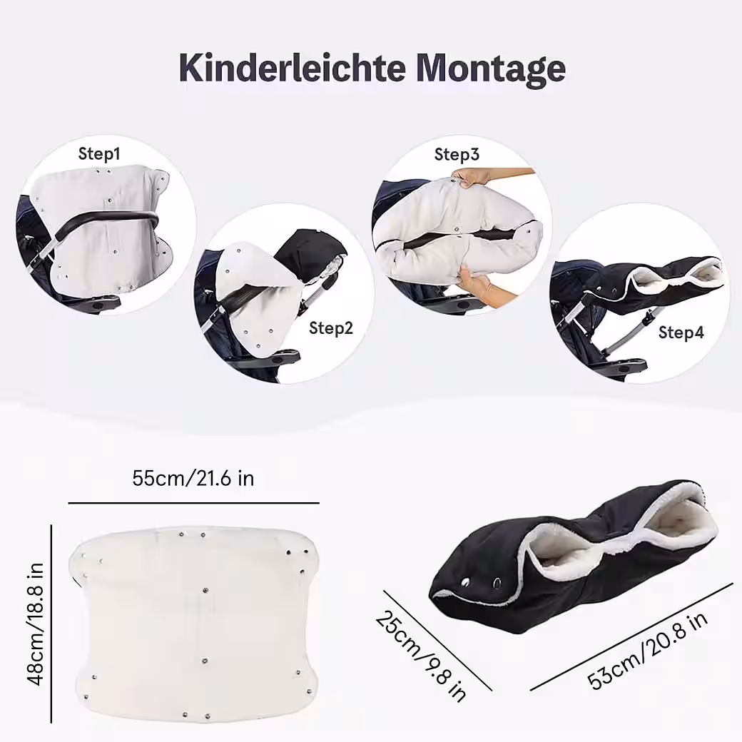Easy to attach to almost any stroller. A major advantage over regular gloves is that you can simply attach them to the stroller with a snap fastener and then leave them on (great for forgetful people). You don’t have to take them off every time you make a phone call or feed the baby. This saves you a lot of hassle.