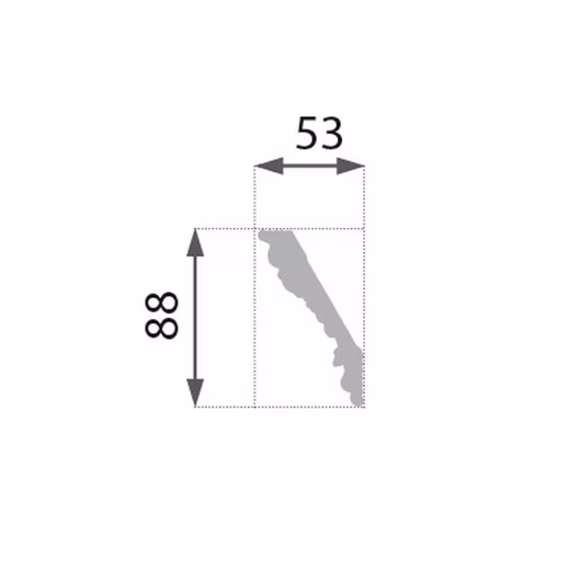 - DIMENSIONS: The stucco moulding with the dimensions 53 x 88 x 2000 mm is a visual highlight on every ceiling.