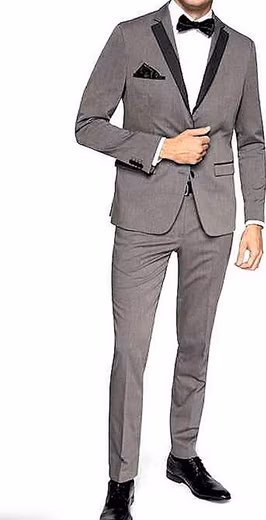 - Grey suit with black collar / reverse