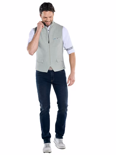 Lightweight, stretchy, and comfortable—this vest impresses with maximum comfort. The highly stretchy material adapts effortlessly to your movements, while its lightweight fabric ensures a comfortable fit. The subtle structure gives it a sophisticated look, which can be customized using the adjustable back strap. Whether worn stylishly with a jacket or casually over a shirt, this vest is a versatile companion for a wide variety of occasions. Combined with dark chinos or jeans, you create a smart look that perfectly combines elegance and casualness.