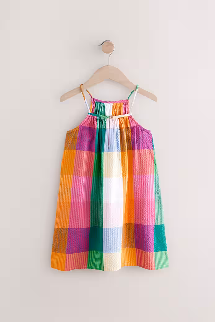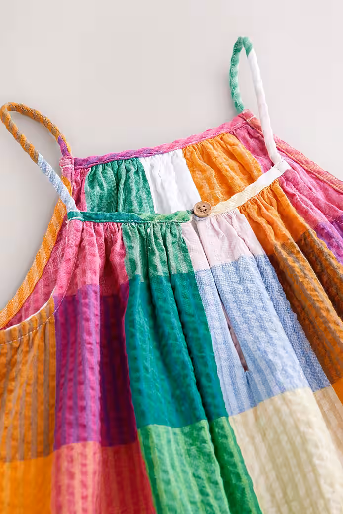 This sweet and colorful cotton fabric summer dress with a crease look and breathable feel with thin straps makes for a real summer feel.