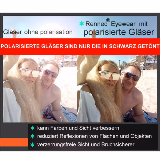 • High-quality aviator sunglasses, light only 23 grams, from Rennec ®, sturdy stainless steel frame with retro temple joints, polarized black lenses or in silver pink mirrored