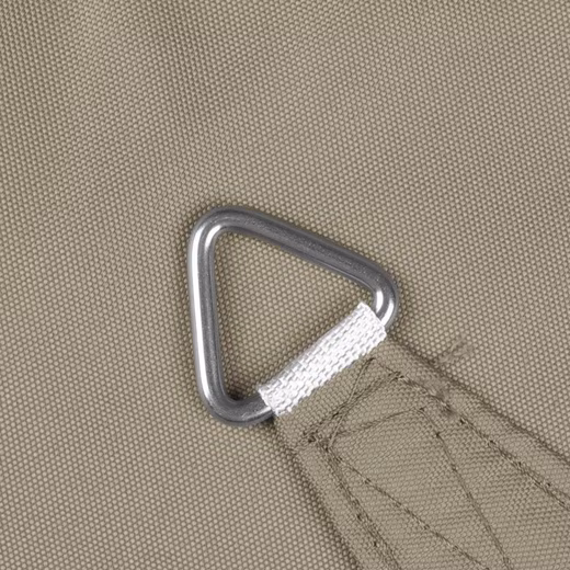 Sun sails are quick and easy to install and can be removed at any time. Once the anchors are in place, a sun sail in a different color can be easily installed. The coated polyester fabric (180 g/m²) of the CANNES sun sail is wind and water-repellent, effectively extending your living space with a cozy outdoor area during the warmer months. The UV protection rating of 50+ offers very high protection against harmful UV radiation and is roughly equivalent to the SPF of sunscreen – perfect for enjoying the beautiful weather safely. The reinforced hems are particularly important for a sun sail, as they ensure a secure hold and prevent the sides from tearing, even in windy conditions. How do I find the right sun sail? 1. Sun position: Be sure to observe the sun’s path beforehand and position the sail so that the shade meets your needs at different sun angles. It’s generally better to choose a sail larger than the area you want to shade. 2. The size and shape of the sunshade should adequately cover the area – various sizes and shapes are available: triangular, square, or rectangular. 3. Keep in mind that the sunshade should have a slope of at least 15° and use the lowest attachment point as a starting point. Installation: The fundamental requirement is that the sunshade is anchored at all corners. Anchoring elements such as sunshade masts, wall brackets, eye bolts for posts, etc., are used for this purpose. The sunshade is attached to the anchoring element using connecting elements (rope, D-shackle, carabiner, tension anchor, bungee cord, tension spring). It is important to consider the necessary slope from the outset and to install the initial fixings high enough. The 15° slope (approx. 15 cm per meter) ensures that rainwater does not collect on the sail but can run off.