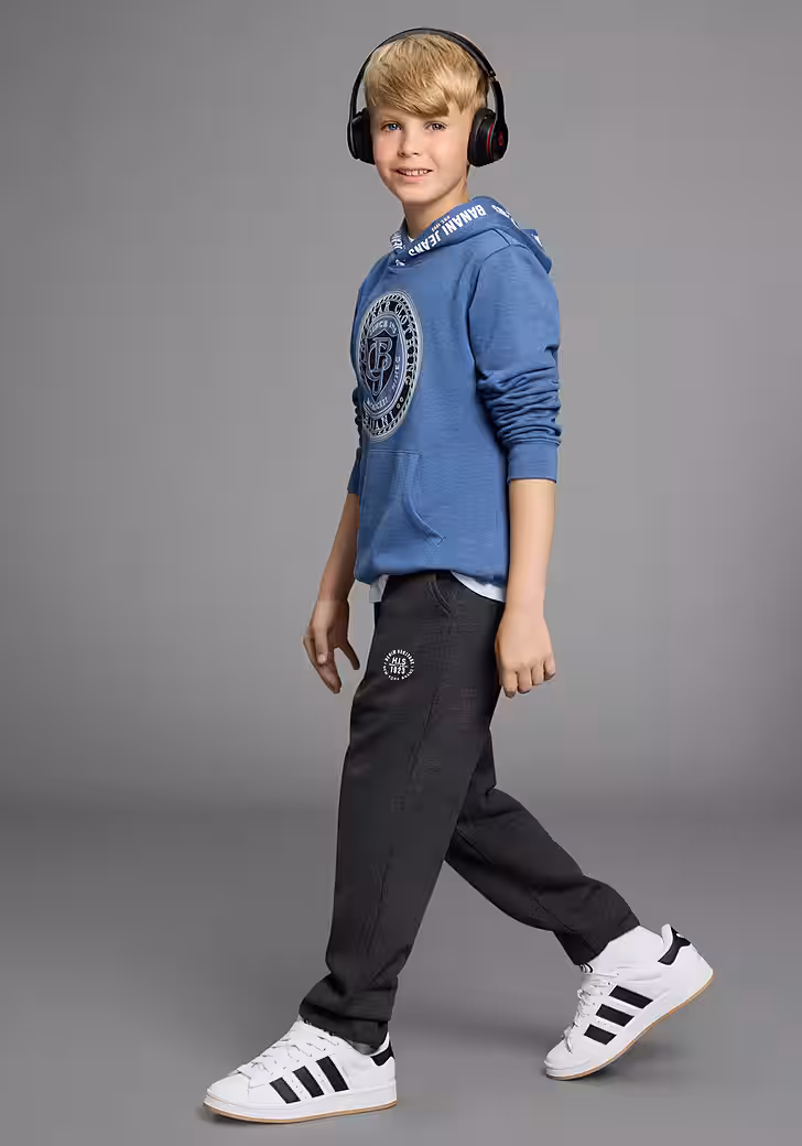 The sweatpants »basic sweatpants, sweatpants« from HIS comes in time for sporty boys. Thanks to the bathroom, the trousers get an authentic and classic touch. The leg closure with elastic band also makes it practical. The straight fit of the boys’ trousers fits slightly without constricting.