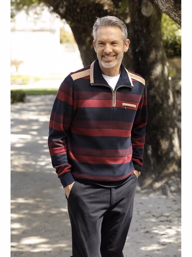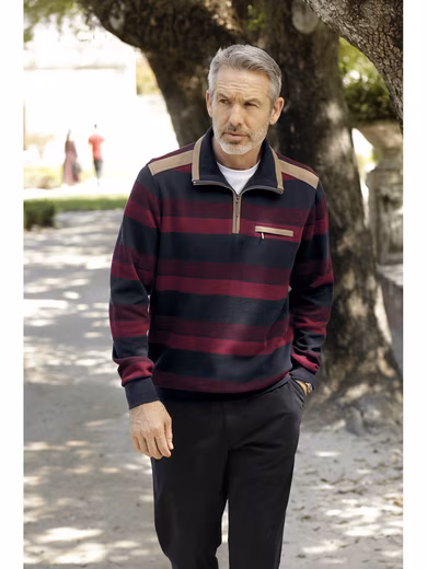 Immerse yourself in timeless elegance with the RAVINO sweatshirt for style-conscious men. Striking velour trims in contrasting colors give this piece a unique touch, while the cleverly designed zippered chest pocket not only offers practical storage but also makes a fashion statement. Made from high-quality cotton, this sweatshirt promises not only comfortable wear but also easy-care quality for a stress-free everyday life. The meticulous craftsmanship guarantees durability and underscores the quality standards of the modern man. Material: 100% cotton.