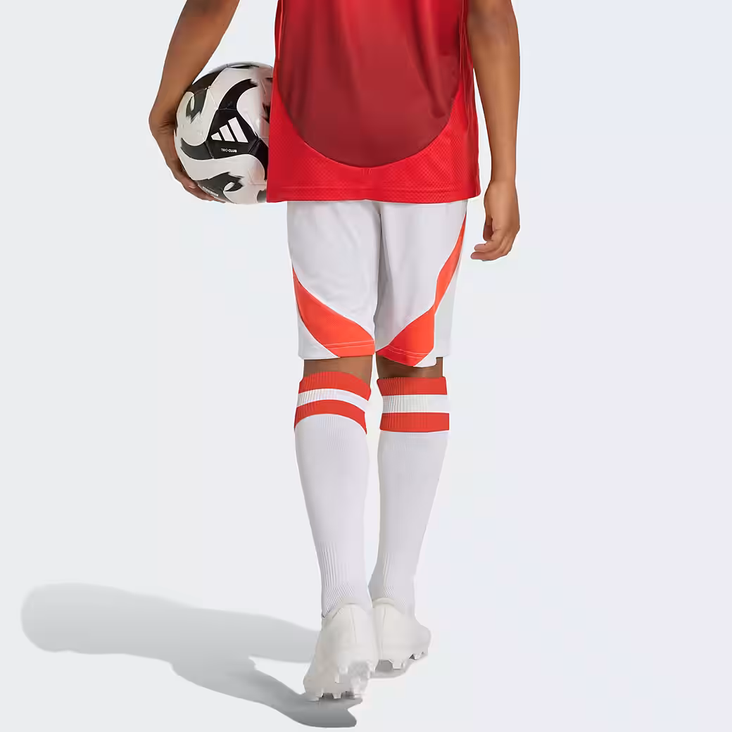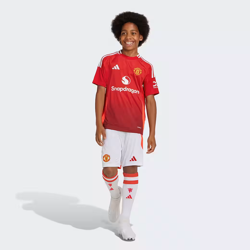Do you love the action at Old Trafford? The classic white of these adidas Manchester United shorts for kids and teens is rounded off by the same bright red details as the home kit. The soft interlock material and the moisture-absorbing AEROREADY technology guarantee fans a pleasantly dry feel. And the embroidered club logo makes the look perfect This product is made with 100% recycled materials. Reusing pre-existing materials helps us reduce waste, limit our reliance on non-renewable resources, and reduce the CO2 footprint of our products.