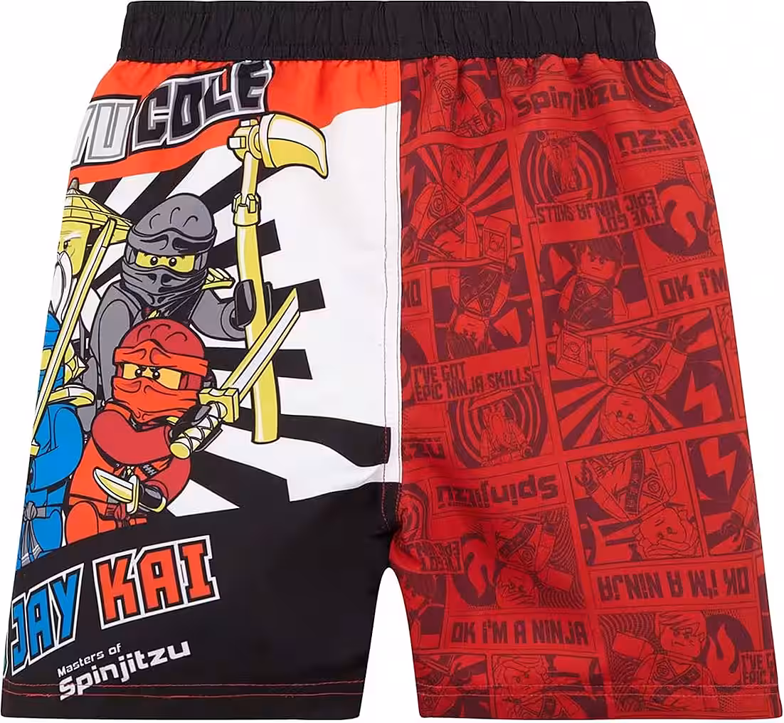 LEGO® Ninjago swimming trunks for boys – size 140 (approx. 10 years) action, adventure and bathing fun! These cool surf shorts with LEGO® Ninjago design bring the ninja masters’ fight to the swimming pool. Ideal for little heroes! Immerse yourself in the world of LEGO® Ninjago – one of the most popular series for children aged 6 and over. The story revolves around six brave ninja: Lloyd, Kai, Jay, Cole, Zane and Nya, who fight together against villains like Lord Garmadon or the Snake Tribes. Their spirit of adventure, their friendship and their cool martial arts make them real role models – and it is precisely this energy that swimming trunks bring with them! With high-quality, robust material and a longer, sporty cut, these swim shorts are perfect for active boys. Whether at the quarry pond, in the outdoor pool, by the sea or at the campsite – action is guaranteed with these swimming trunks. The fabric is chlorine-resistant, quick-drying and comfortable to wear – perfect for long summer days full of play and exercise. • Size: 140 (for about 10 years) • Material: Robust, quick-drying polyester • Design: LEGO® Ninjago print with action motifs • Cut: Slightly longer, loose and sporty • Special features: Non-slip, with elastic waistband and drawstring Parents who are looking for quality and enthusiasm for their children are just right with these swimming trunks. It combines popular heroes, functionality and durable design – for an unforgettable summer!