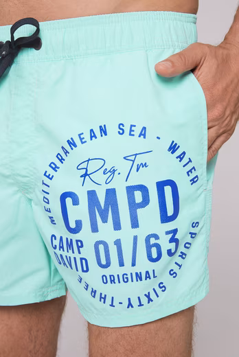 These quick-drying swim shorts from CAMP DAVID are a classic. They feature a comfortable elastic waistband with a drawstring and mesh inner briefs. The bold print on the left leg creates a unique CAMP DAVID look. The model is 196 cm tall and wears size M.