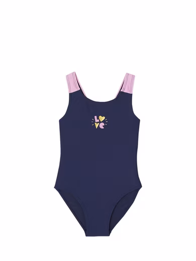 - Swimsuit: lettering „Love” at the front. Contrast color carrier. Neckline on the back