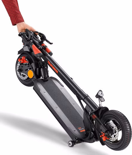 Compared to many other models, the Synergie S950 also impresses with its complete foldability. In addition to the foldable and height-adjustable handlebar, the grips can also be folded away. Thanks to this compact design and its manageable weight of approximately 21.5 kg, you can easily take the e-scooter with you wherever you go.