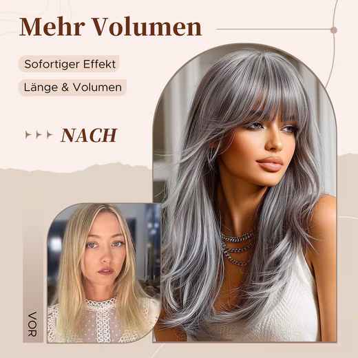 - 46 cm long, approx. 220 g light. With a multi-layered cut for extra fullness and lively movement.