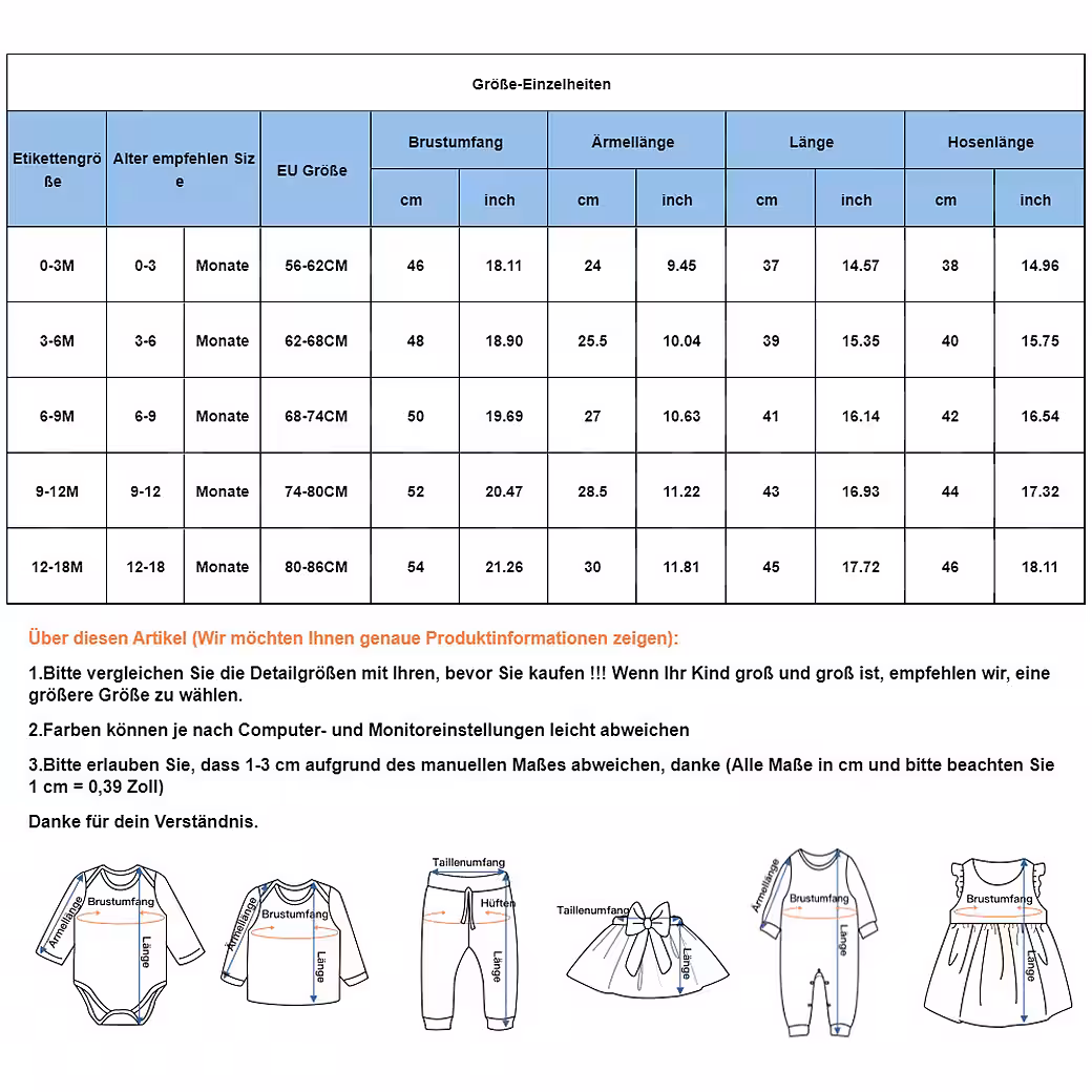 Size information: 0–3 months/3–6 months/6–9 months/9–12 months/12–18 months