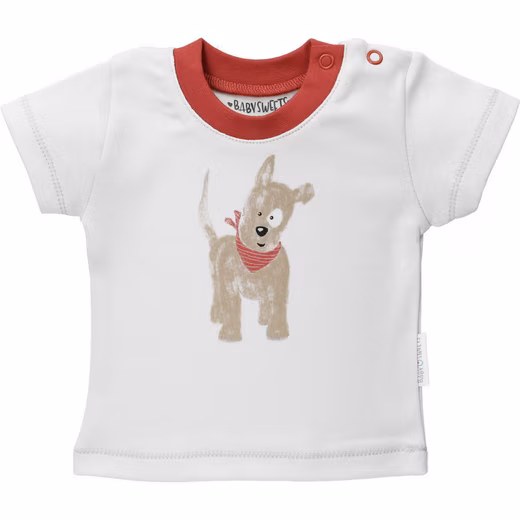 A two-piece set means twice the adorable look! That’s why the cute dog doesn’t come alone, but with matching pants, completing the two-pack into a wonderful outfit. The dog design is echoed in the collar of the T-shirt and further enhanced with practical snap fasteners. A real eye-catcher for easy dressing, undressing, and diaper changes! Plus, the soft, breathable fabric is sustainably sourced. Elasticated cuffs ensure a perfect fit.