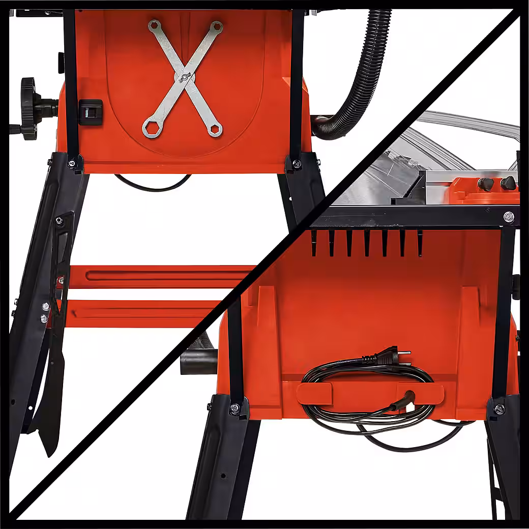 - With parallel fence for trouble-free and accurate longitudinal cuts, with sliding table
