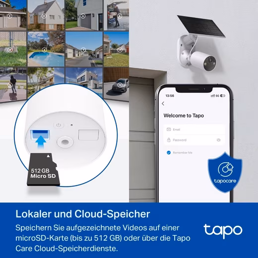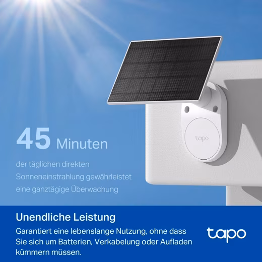 The TP-Link Tapo C410 KIT is your reliable, solar-powered security camera system. With razor-sharp 2K resolution, color night vision and intelligent person detection, it provides protection around the clock. Thanks to its wireless design and weatherproof housing, it can be flexibly installed anywhere. Save recordings to a microSD card (up to 512GB) or to the Tapo Care Cloud. Perfect for smart, maintenance-free monitoring of your home!