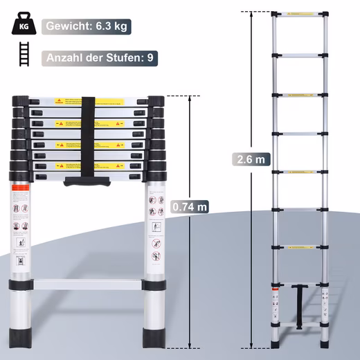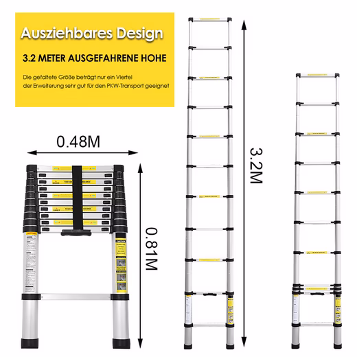 - High-quality aluminum alloy: The telescopic ladder is made of a high-quality aluminum alloy.