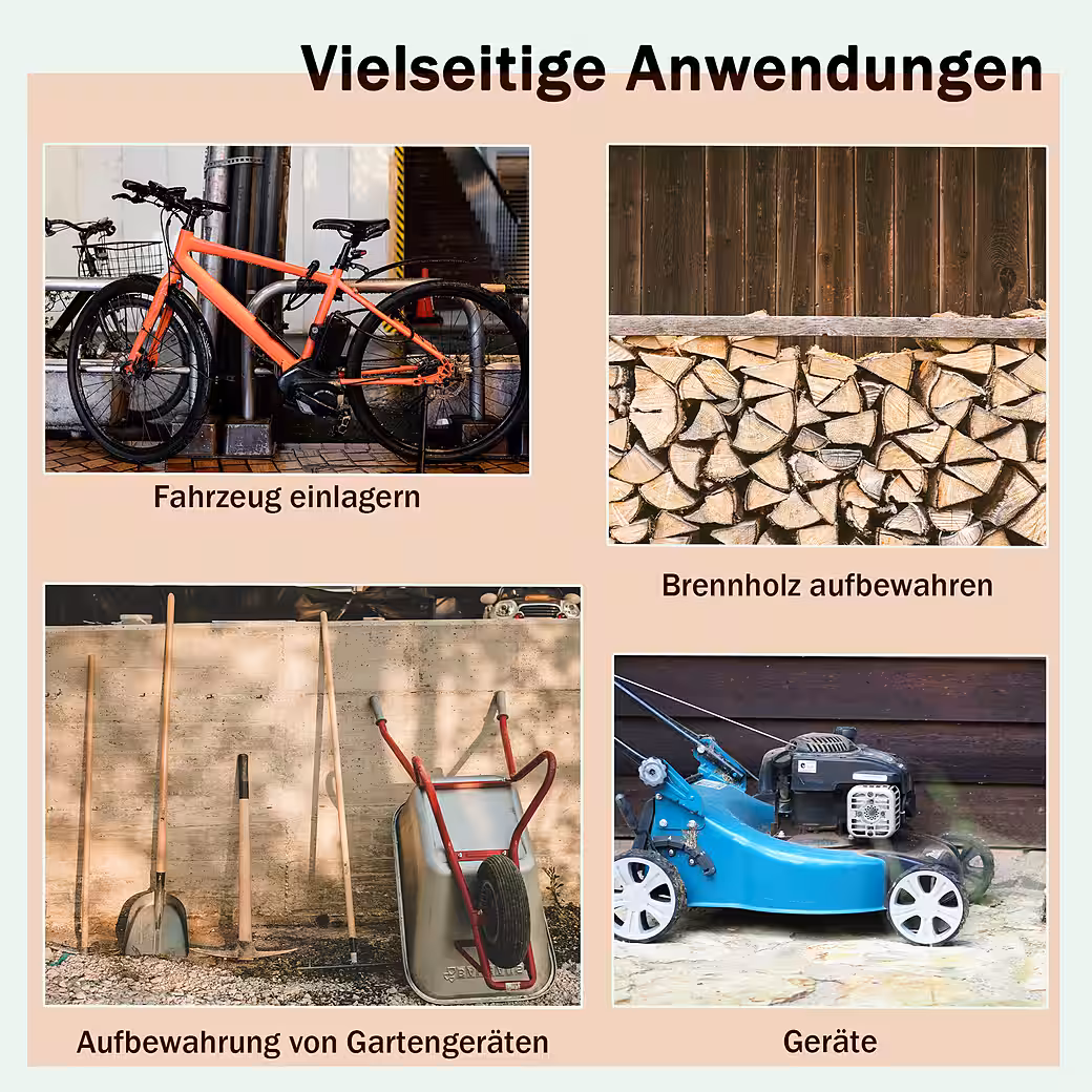 - The frame of this garden shed consists of a strong steel frame that can withstand strong winds and other adverse weather conditions.