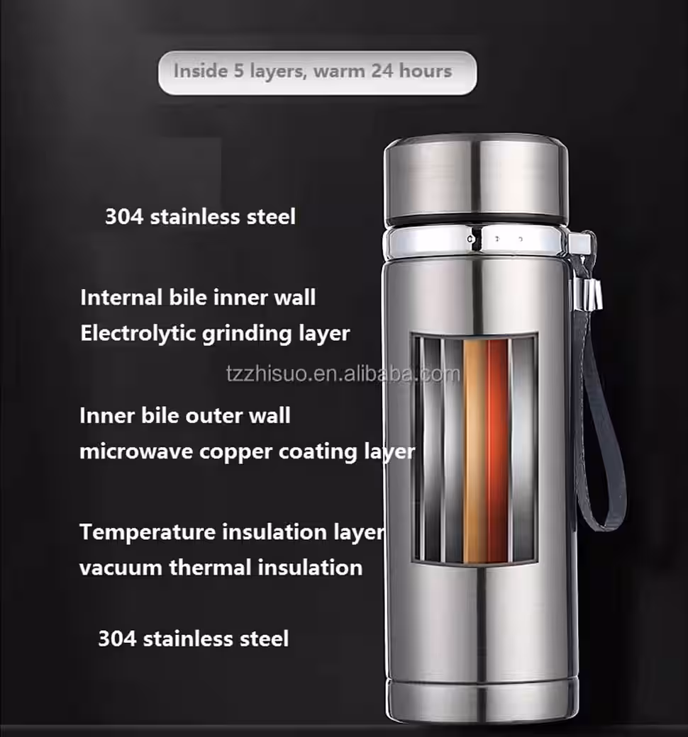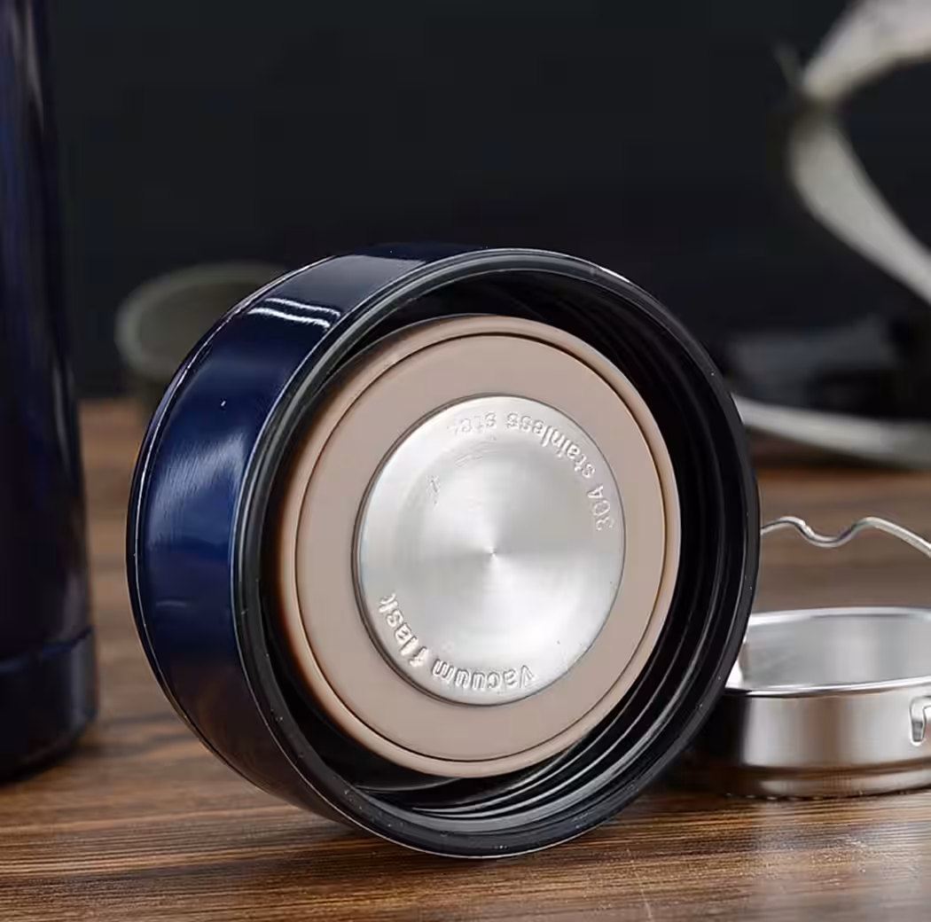 The Botells thermal bottle in an elegant metallic design | 800 ml is now available from us. This insulating bottle is the eye-catcher The double-walled thermal construction with vacuum insulation has proven so successful that we have continued to choose this innovative property. Glass inserts are heavy, fragile, short-lived AND consume far more CO2 in production than double-wall technology. As is known, the double-walled construction is haptic, there is no transfer of heat to the outside. The vacuum insulation also keeps the temperature of your drinks for about 24 hours, hot or cold. Enjoy your favorite drinks such as coffee, tea, if necessary, simply hot water for baby food or pleasantly refreshing spirits, soda, iced tea or other favorite drinks in the hot summer months. For tea lovers, a stainless steel permanent strainer is included in the scope of delivery, so you can create further individual taste experiences. With the durable hand strap, the bottle can be transported anytime, anywhere. Regardless of whether you take the bottle with you for exercise, work, excursions or hikes, the capacity of 800 ml ensures sufficient liquid. The lid has a screw cap, there is a silicone seal inside that prevents leakage, and you can safely transport the thermos in your bag or backpack. Our Botells thermal bottles are made of stainless 18/08 stainless steel, of course in food quality, you only enjoy the pure taste. After enjoying it, the sieve can easily be put in the dishwasher and you will lighten lightning again. For long-term enjoyment of the look, we recommend cleaning the bottle in the dishwasher at a maximum of °50. Optionally select the cleaning brush for quick and effective cleaning. Do you take the thermal jug with you everywhere, are you traveling, working, at school or doing sports? The vacuum bottle looks great everywhere! A combination of high-quality look and functionality, try it out!
