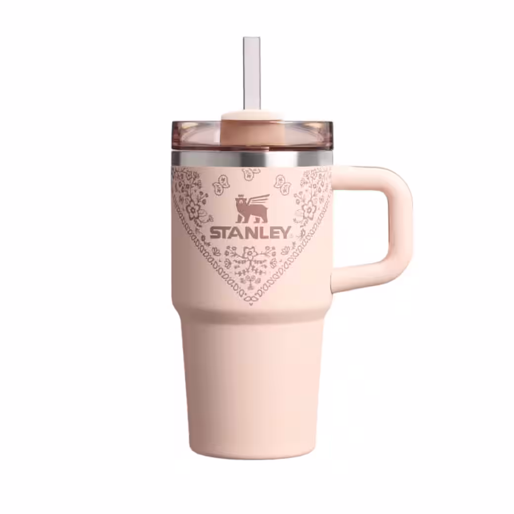 Refresh your inner glow with the Mesa Rose Collection. Find warmth in rose gold in a radiant copper tone. Or pair it with Blue Corn Paisley or Conch Floral. Unleash your brilliance and see how far you can go. The 0.59-liter Quencher® H2.0 FlowState™ mug is now available with a handle and perfectly complements the rest of the Quencher® Collection. Its double-walled vacuum insulation keeps your drink at the ideal temperature for hours. The versatile FlowState™ 3-position lid offers three drinking settings: one for the reusable straw, one without, and the option to twist the silicone lid closed for on-the-go use.