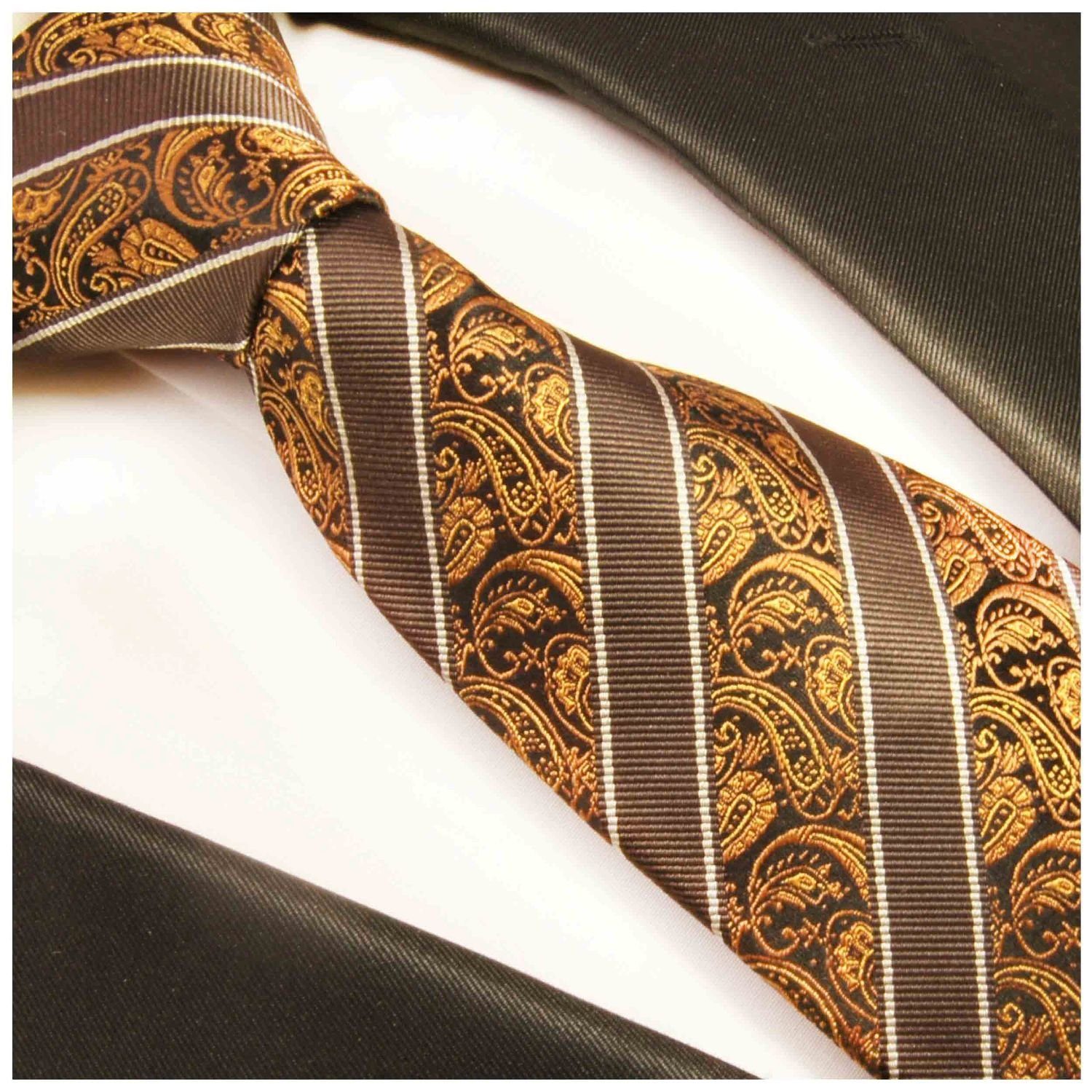 Designer men’s tie brown paisley striped | Silk tie necktie – Paul Malone tie – Pure silk – Tie width: selectable (normal or narrow) – Tie length: selectable (normal or extra long) A beautiful, modern tie made of 100% silk for formal occasions, the office, or everyday use. You can choose between a normal and an extra-long tie. You can choose between a normal width tie and a narrow tie for the width. Modern, elegant, and always the right choice with a tie from Paul Malone. Timeless design and durability characterize this fine tie. This silk tie impresses with its outstanding quality. The elegant, smooth surface makes tying a tie very easy. The tie knot, whether Windsor or a slightly narrower version, will be easy to achieve with this tie. Add this elegant model to your outfit! Our products are manufactured to the highest quality so that you can be completely satisfied. This tie is versatile, e.g. for Christmas, wedding, birthday, prom or as a business tie for a suit in the office
