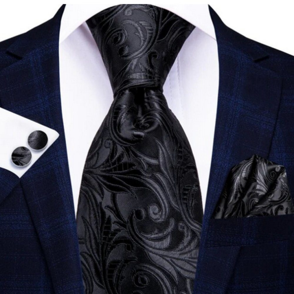 Elegant 3-piece set: silk tie, pocket square & cufflinks – High quality