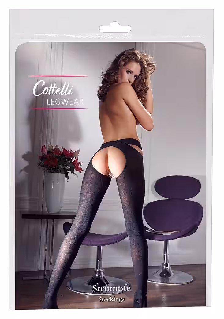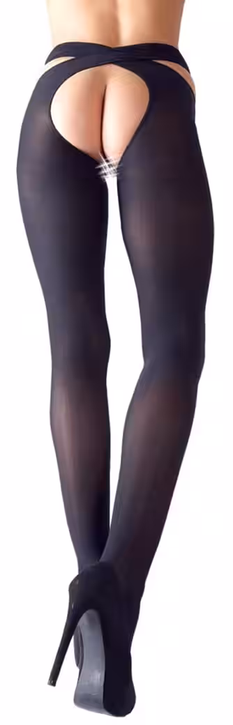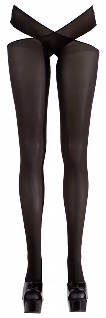 Black stockings with hip holders that are worn crosswise. Open at the crotch.