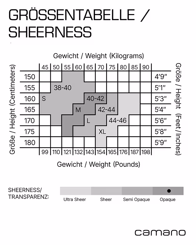 Discover the opaque 60 DEN tights from camano now with their natural matt look. These tights not only impress with their stylish design, but also with their outstanding stretchability. Thanks to the innovative 3 D knitting technology, an even and ring-free stitch pattern awaits you. The perfect choice for an elegant and comfortable appearance. Order your camano tights now and experience an incomparable wearing experience.