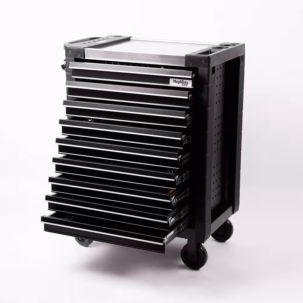 Experience the ultimate in tool organization with the Mephisto ProLine tool trolley in elegant full black. This heavy-duty and scratch-resistant tool trolley sets new standards in terms of quality and functionality.