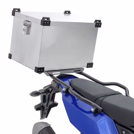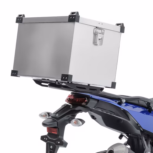- Plastic corner pieces with lashing eyes for attaching additional luggage. Not pre-drilled, so the top case can be freely positioned on the rack.