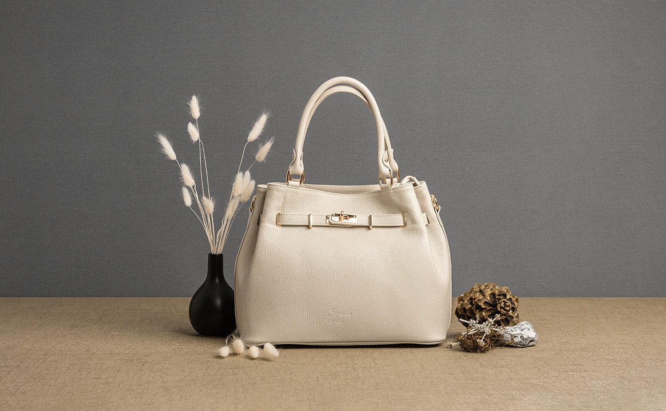 Title: Genuine leather, Made in Italy, spacious handle bag with smartphone compartment