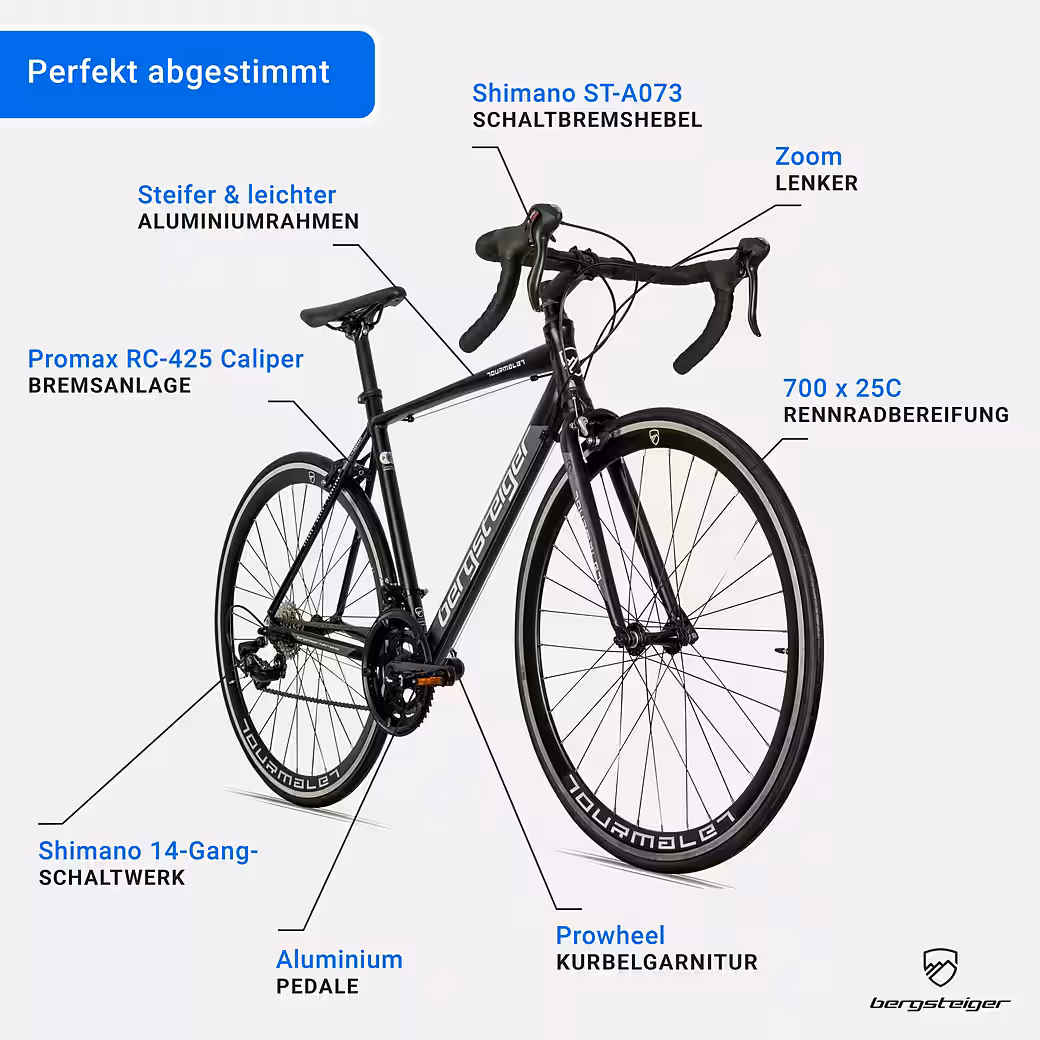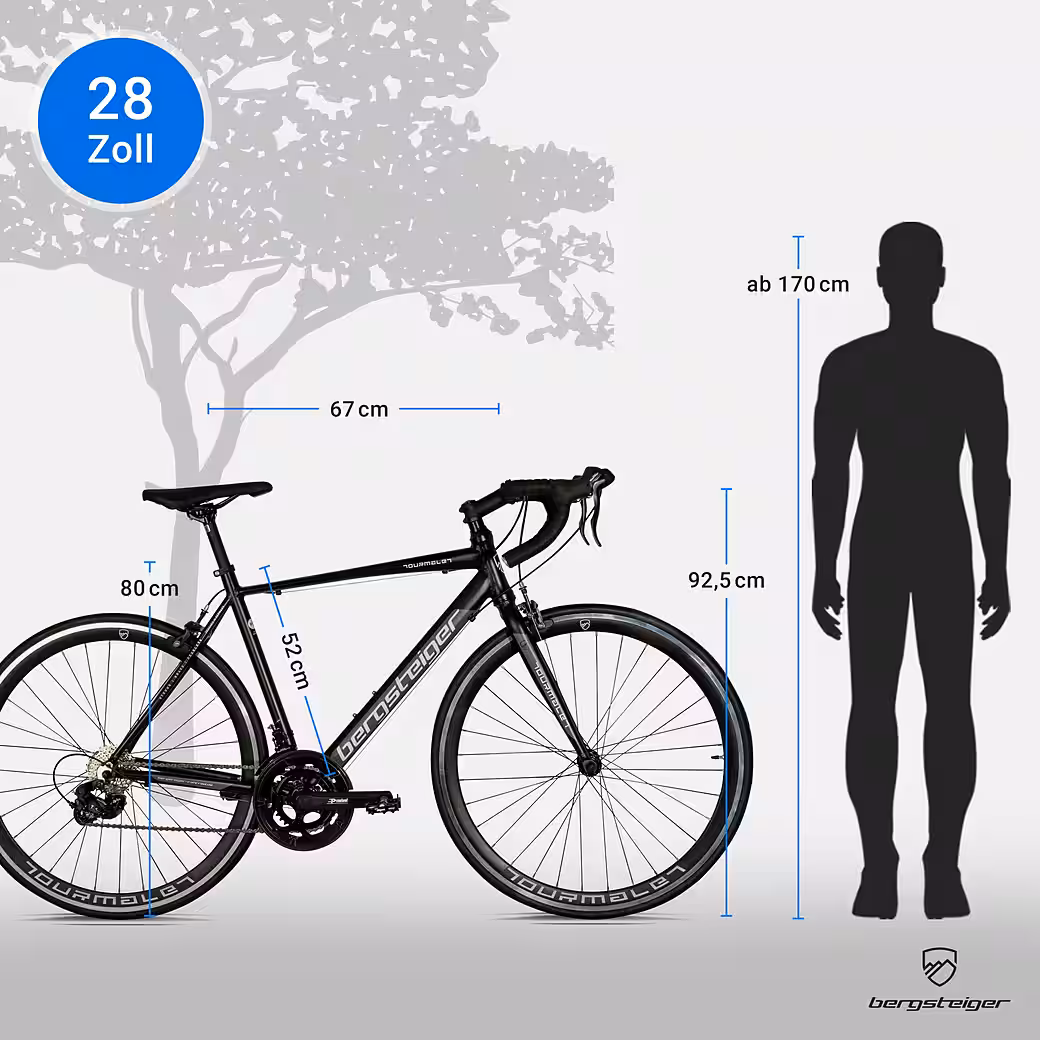 - TOP ROAD BIKE – The 28-inch Bergsteiger Tourmalet is sure to make any road cyclist’s heart beat faster. It’s suitable for men, women, and teenagers from a height of 170 cm.