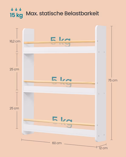 - Ample storage space: With dimensions of 12 x 60 x 75 cm, this 3-tier wall shelf offers enough space for approximately 20 books.