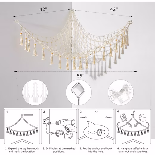 - Add a safety buckle design to prevent the stuffed animal net or hammock from falling down, ensuring the safety of your children.