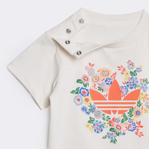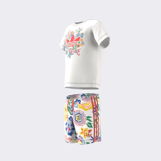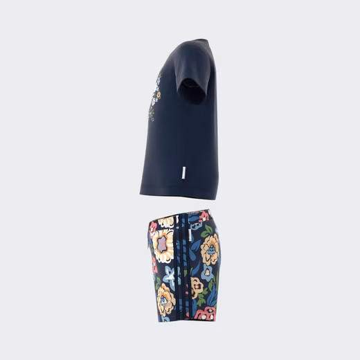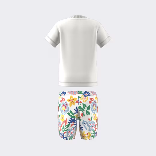 With this adidas set for babies and toddlers, your little one is ready to play. The T-shirt and shorts feature a colorful floral print by Liberty London. The iconic Trefoil and 3-Stripes add a sporty touch to the artistic design.100% cotton.