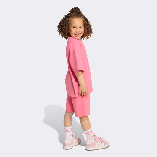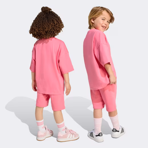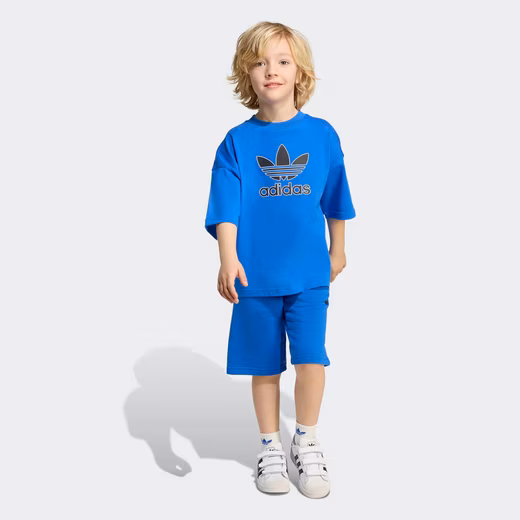 ’90s vibes for a new generation. This adidas tracksuit for kids consists of a loose-fitting T-shirt and shorts. The comfortable cotton blend ensures maximum comfort whether you’re on the go or relaxing. A large Trefoil logo on the T-shirt provides an eye-catching finish.Care instructions: