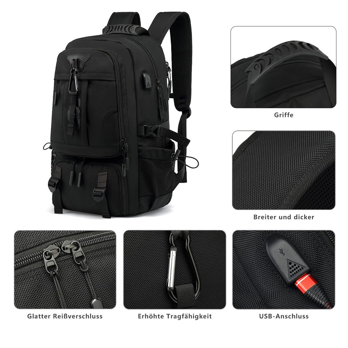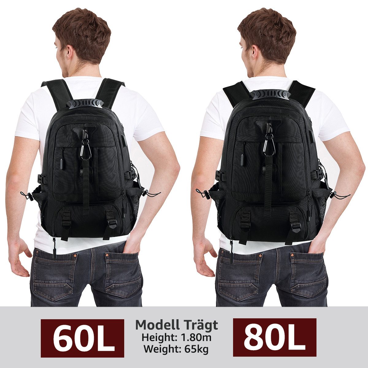 Size: 35×22×53cm, the 60L backpack with five-layer protective sponge for 17.3 inch laptops, main compartment for books, A4 folders, and clothes. 2 front pockets for your daily necessities, 2 side pockets for an umbrella or water bottle. It is practical for a variety of uses, suitable for outdoor sports, weekend trips, work backpacks, and school bags.