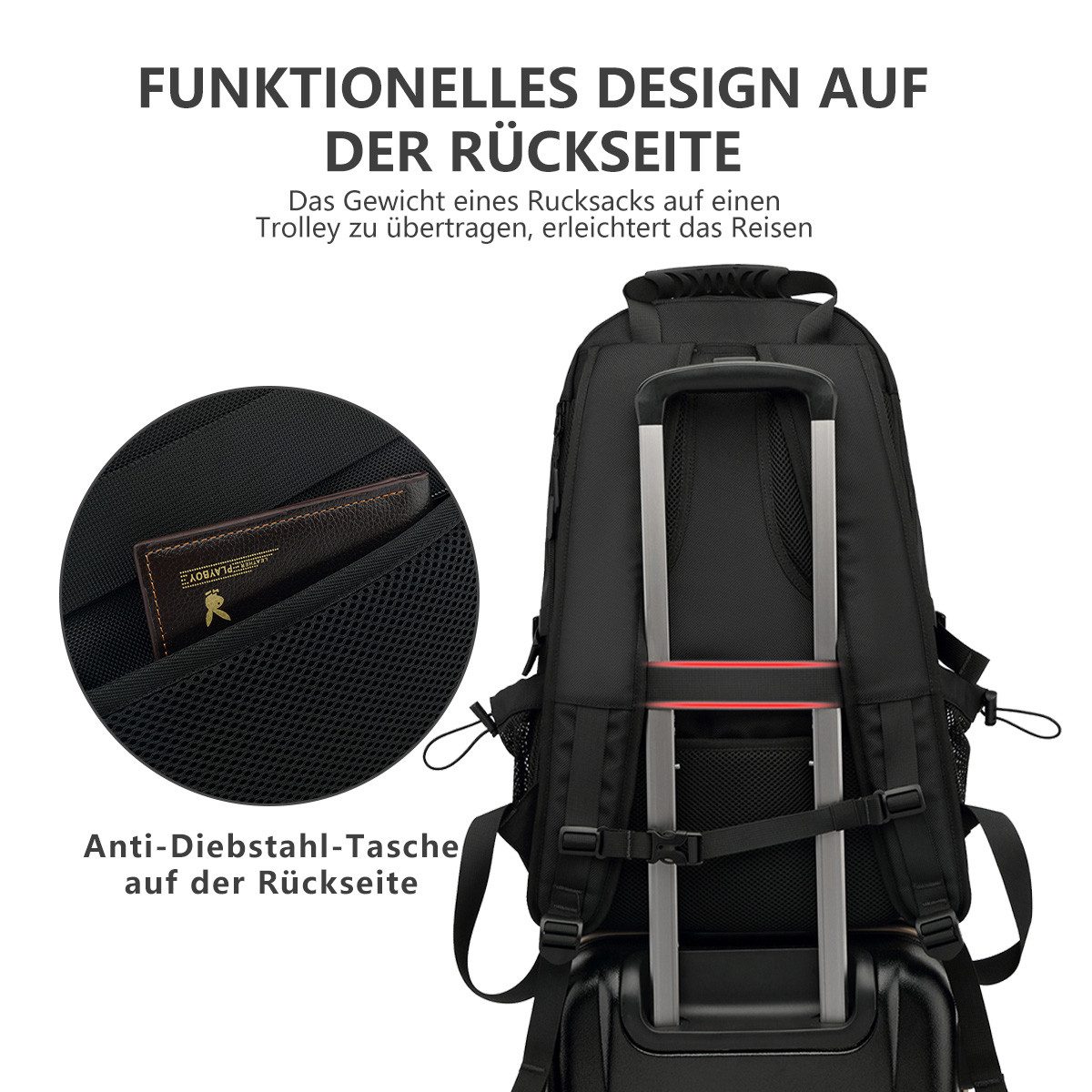 The men’s backpack combines all the practical features for outdoor activities and travel. Convenient external USB charging port for charging your electronic devices while walking. LUGGAGE STRAPS allow you to attach to a luggage suitcase and slide with it. ANTI-THEFT POCKET on the back for your valuables. Perfect partner for business trips and travel.