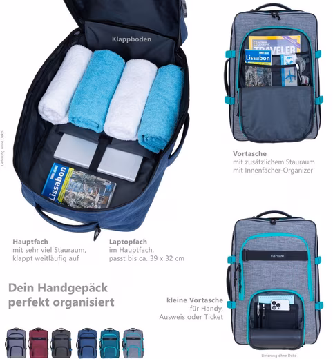 • IATA-compliant external dimensions: approx. 50 x 35 x 20 cm