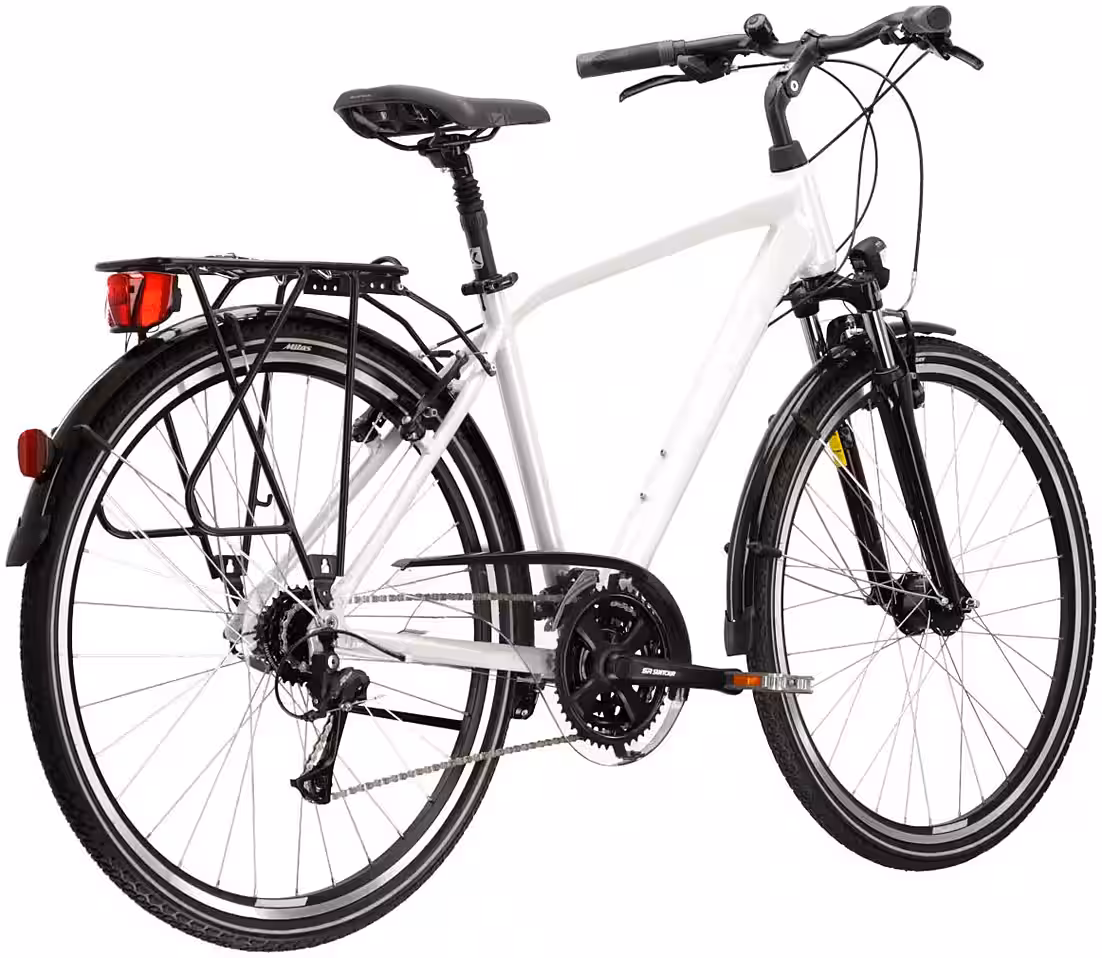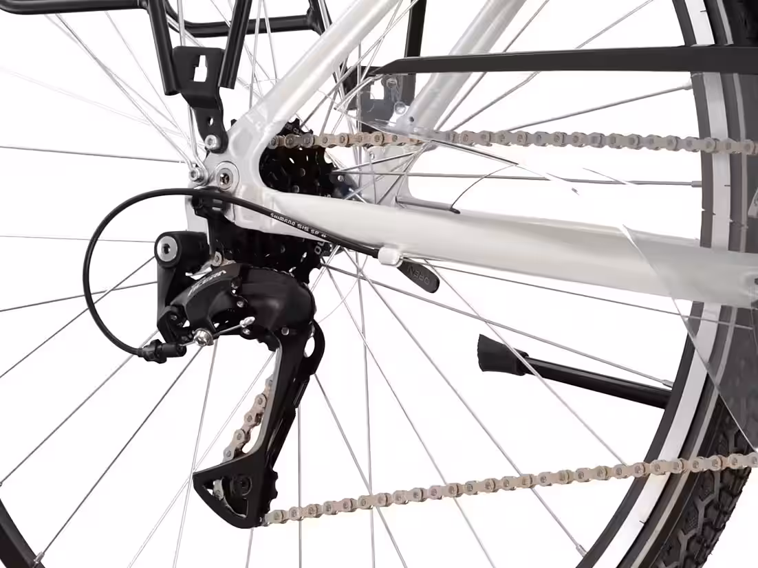 A robust and stable rear rack is essential for this city bike. It allows you to carry extra luggage, and attaching additional panniers is no problem. A complete mudguard system is also included, providing excellent protection from mud.