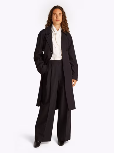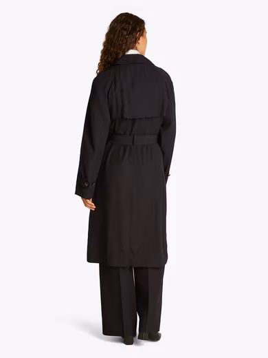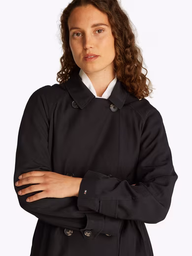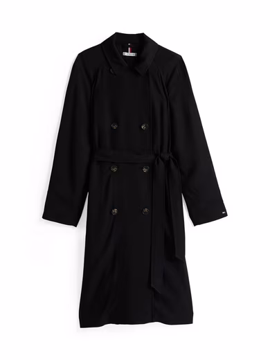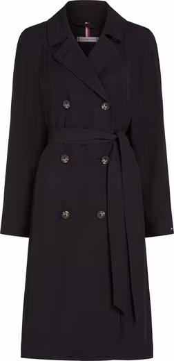 Searched and found: Take a closer look at the “ESSENTIAL FLUID TRENCH” trench coat by Tommy Hilfiger . The trench coat is cut knee-length. The slash pockets provide space for small items.
